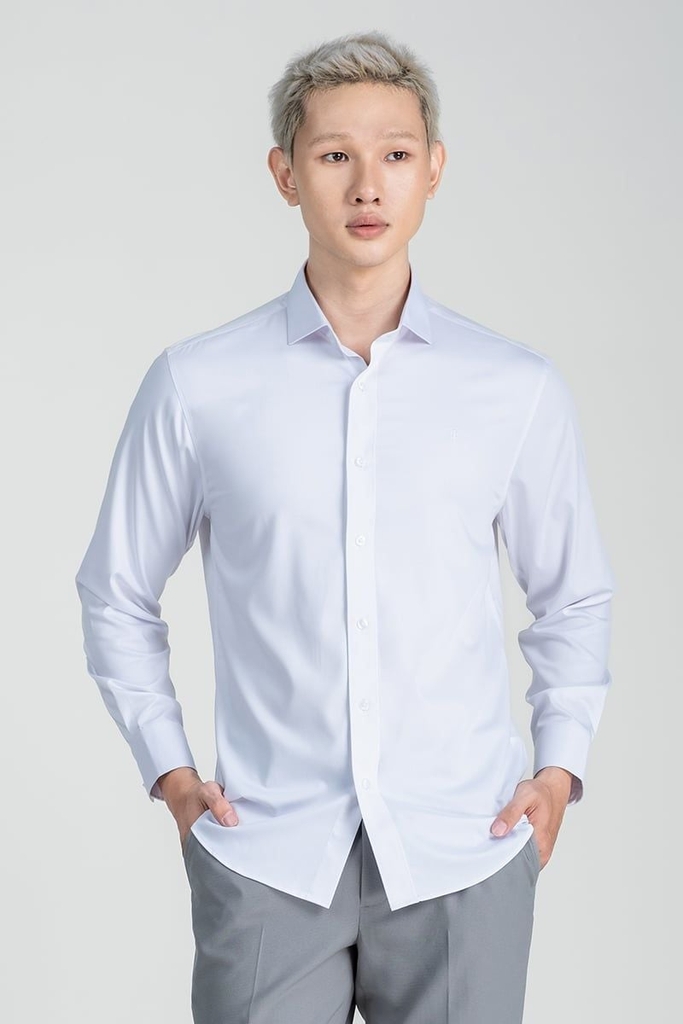 - Thiết kế áo sơ mi tay dài form ôm vừa vặn tôn dáng cùng logo thêu tinh xảo trên ngực áo mang đến vẻ ngoài tinh tế, lịch lãm.