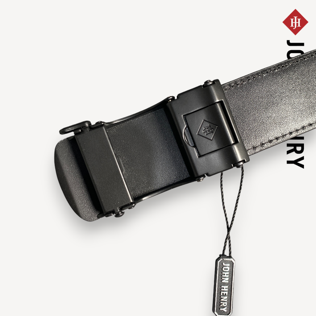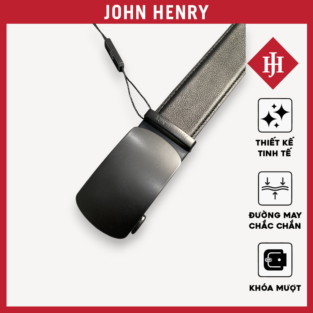 - Thắt lưng nam John Henry màu đen sở hữu thiết kế hiện đại, nam tính với mặt khóa kim loại phủ đen nhám, tạo cảm giác mạnh mẽ và sang trọng. Kiểu khóa gọn gàng, dễ sử dụng, phù hợp cho phong cách công sở lẫn casual hằng ngày.
