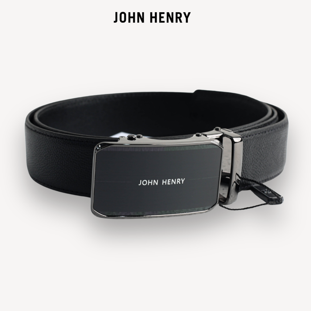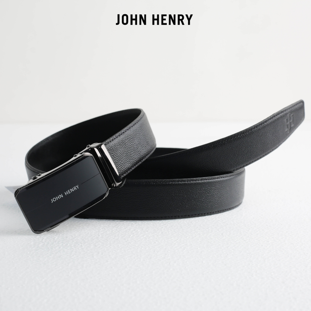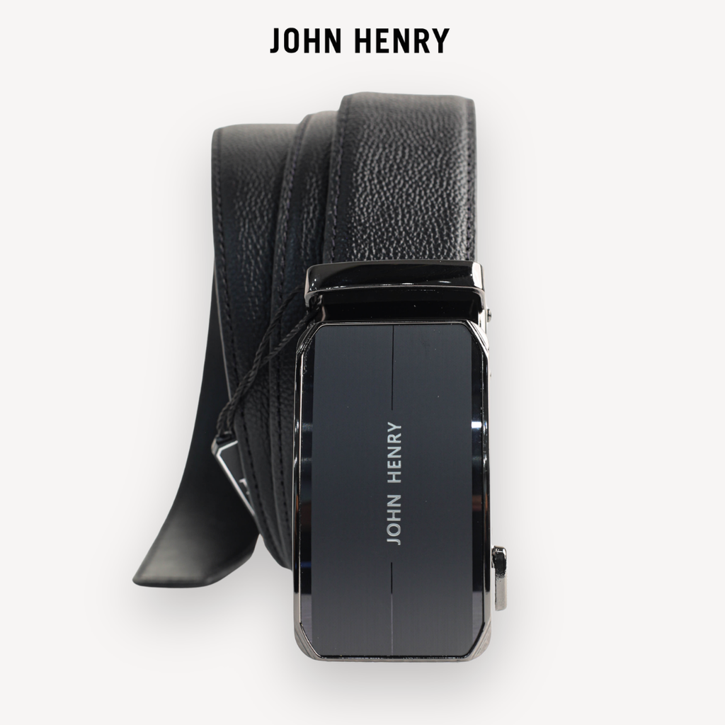 - Thắt lưng da nam đến từ thương hiệu John Henry mang phong cách hiện đại, sang trọng với mặt khóa kim loại bản lớn được thiết kế tinh giản nhưng đầy mạnh mẽ. Tông màu đen chủ đạo kết hợp cùng bề mặt bóng nhẹ giúp sản phẩm dễ dàng phối hợp với nhiều trang phục, từ công sở lịch lãm đến trang phục thường ngày.