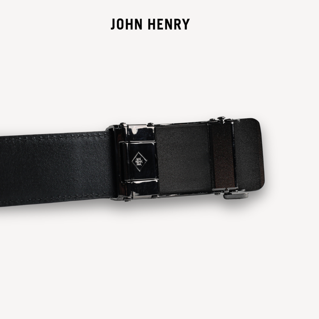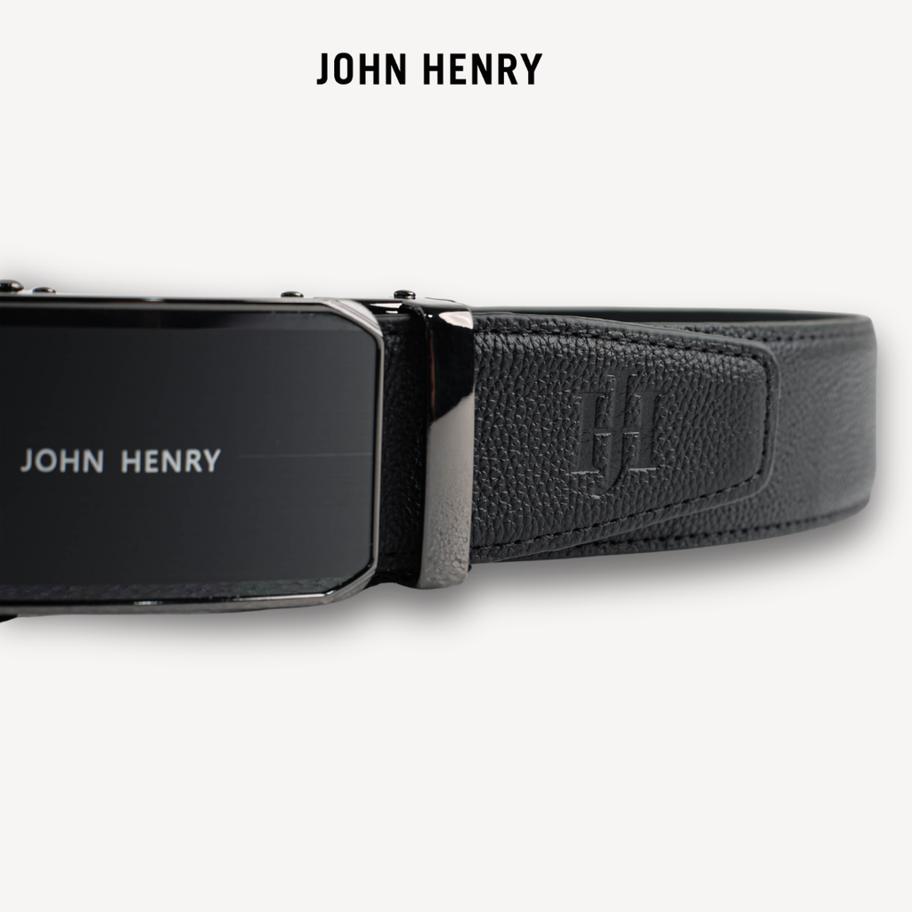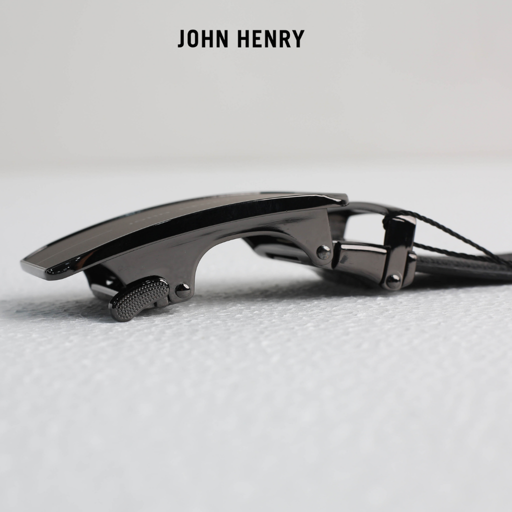 - Thắt lưng da nam đến từ thương hiệu John Henry mang phong cách hiện đại, sang trọng với mặt khóa kim loại bản lớn được thiết kế tinh giản nhưng đầy mạnh mẽ. Tông màu đen chủ đạo kết hợp cùng bề mặt bóng nhẹ giúp sản phẩm dễ dàng phối hợp với nhiều trang phục, từ công sở lịch lãm đến trang phục thường ngày.