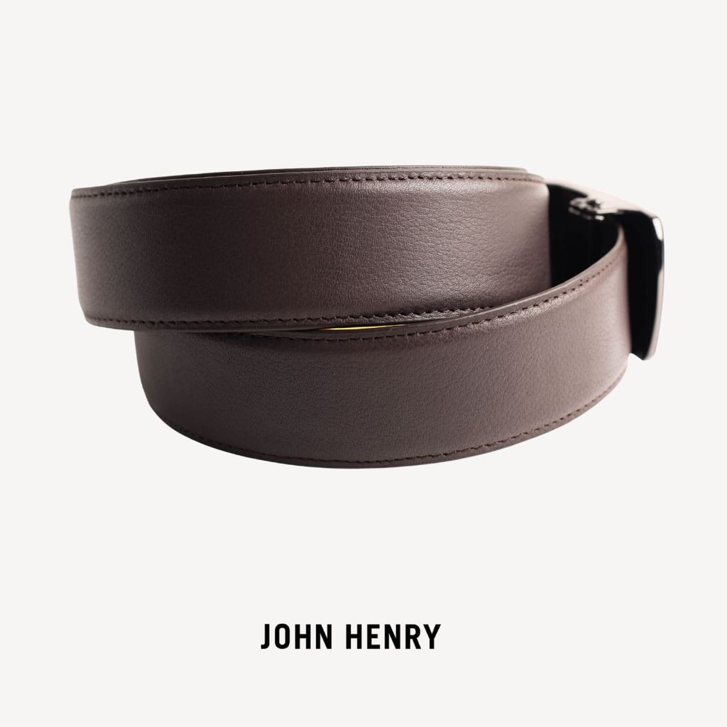 - Thắt lưng nam John Henry là phụ kiện lý tưởng dành cho quý ông theo đuổi phong cách lịch lãm và tinh tế. Với gam màu nâu cổ điển, sản phẩm dễ dàng kết hợp cùng quần âu, jeans hay trang phục công sở, giúp hoàn thiện vẻ ngoài chỉn chu và sang trọng. Thiết kế mặt khóa kim loại bản lớn, khắc logo nổi bật, tạo điểm nhấn mạnh mẽ và nam tính.