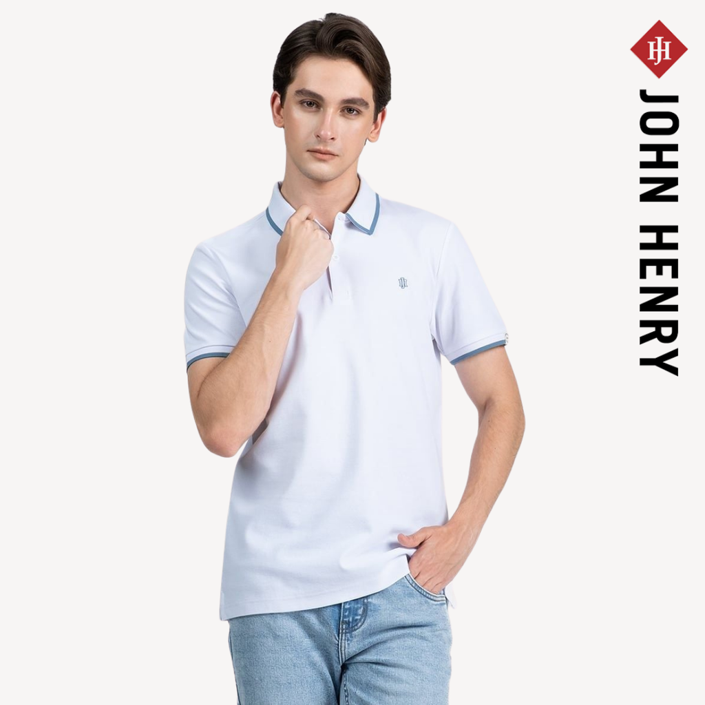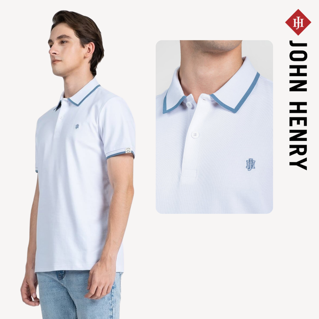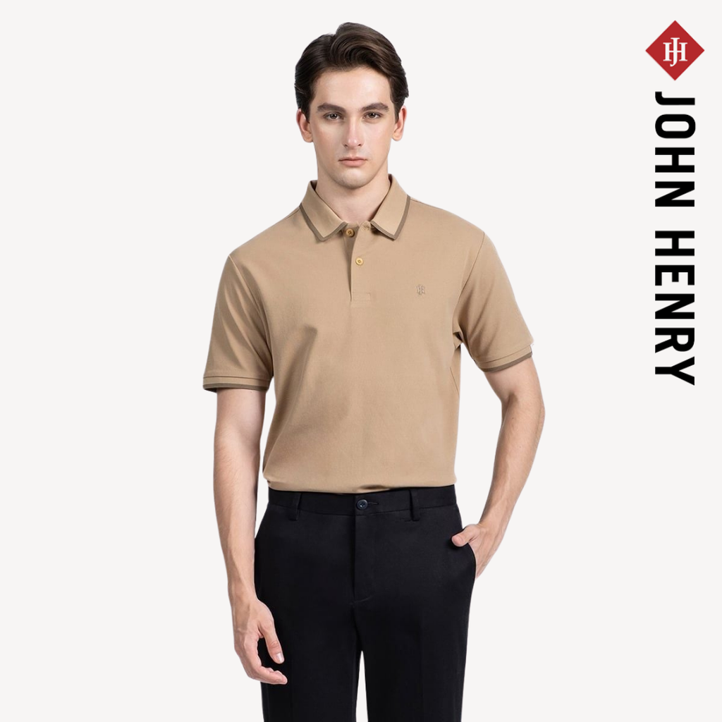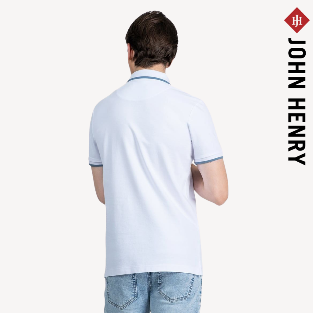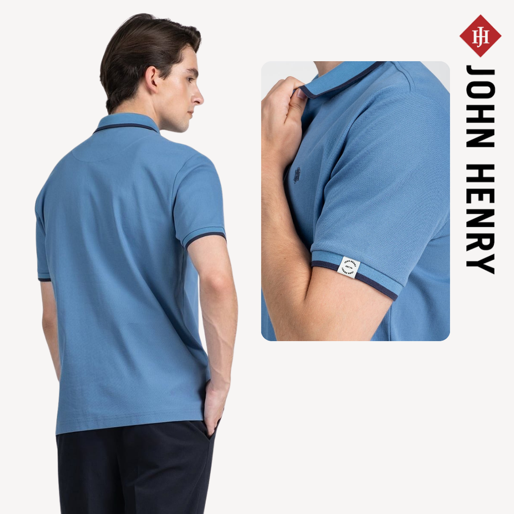 ▪️ Cổ áo và tay áo được phối viền màu, tạo điểm nhấn tinh tế cho tổng thể thiết kế. Logo JOHN HENRY thêu nhỏ trước ngực giúp tăng nhận diện thương hiệu mà vẫn giữ phong cách đơn giản, dễ mặc.