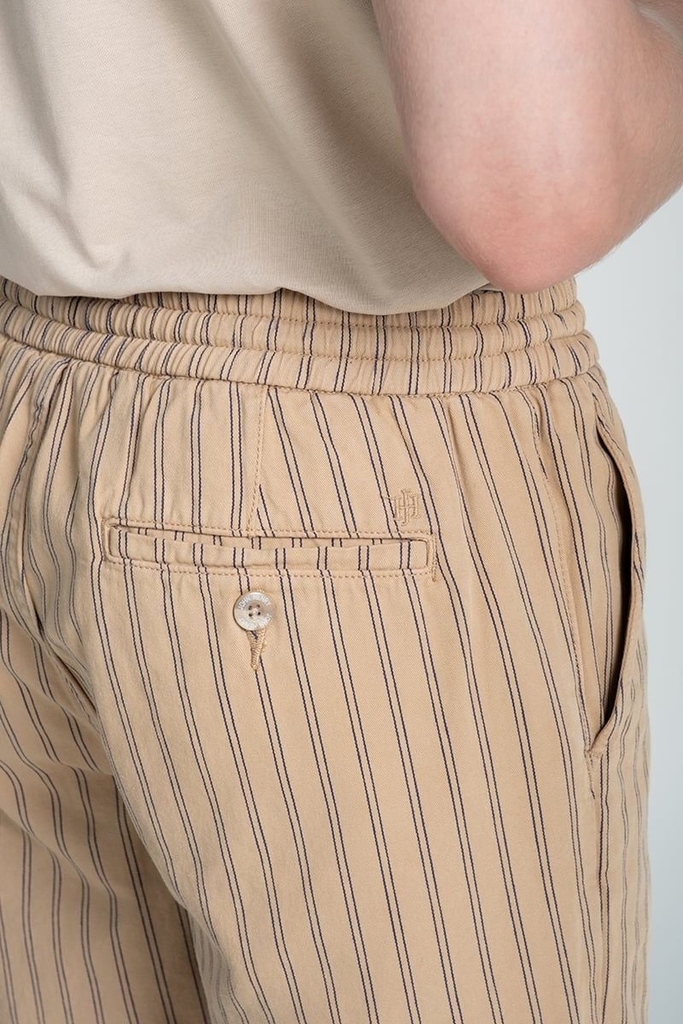 - Quần sọc dọc tinh tế, form ngắn trên gối, có dây thắt eo giúp bạn dễ dàng điều chỉnh phù hợp với cơ thể.