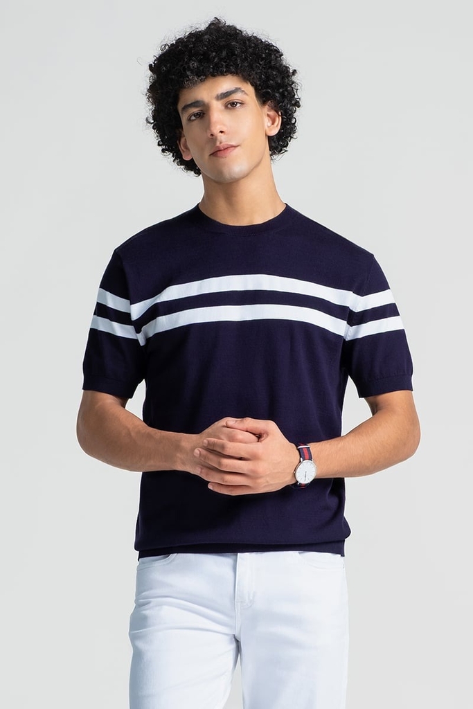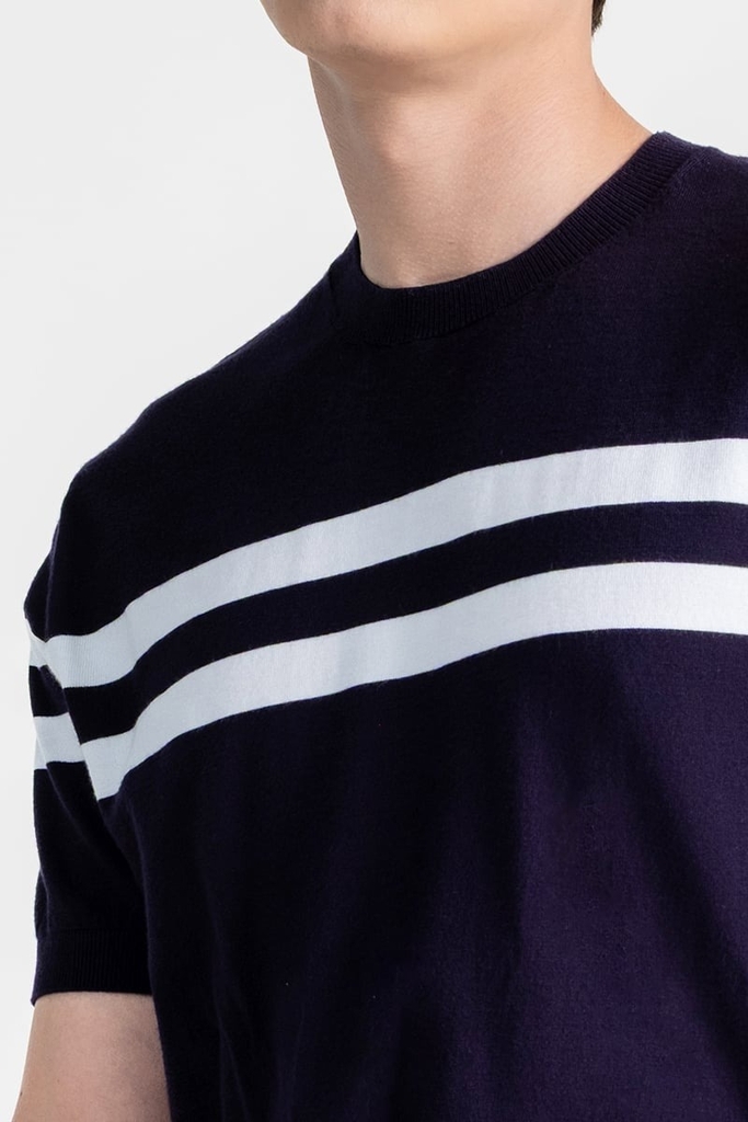 - Thiết kế tay ngắn cổ tròn hiện đại, phối chi tiết kẻ ngang đối màu ở ngực tạo điểm nhấn trẻ trung và năng động. Đường dệt tinh tế, form áo vừa vặn, dễ dàng kết hợp cùng quần jeans, khaki hoặc shorts để hoàn thiện phong cách nam tính và thanh lịch.