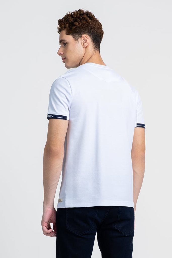 ▪️ Thiết kế form vừa, ôm nhẹ phần vai và thân áo, không bó sát, tạo sự thoải mái khi vận động. Tay áo ngắn gọn gàng, dễ mặc và phù hợp với nhiều dáng người. Phần lai tay được bo dệt, phối chữ “JOHN HENRY” tinh tế, tạo điểm nhấn nhẹ nhưng vẫn giữ tổng thể gọn gàng, hiện đại.