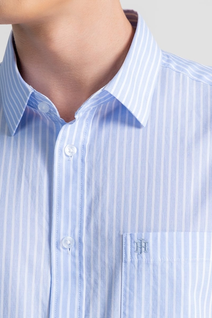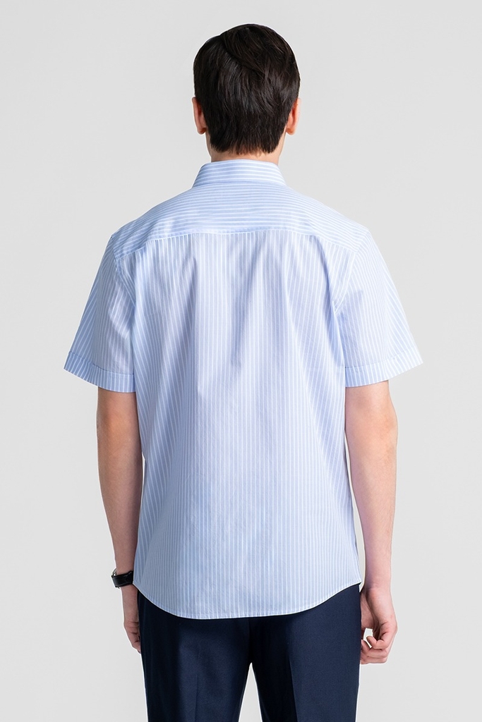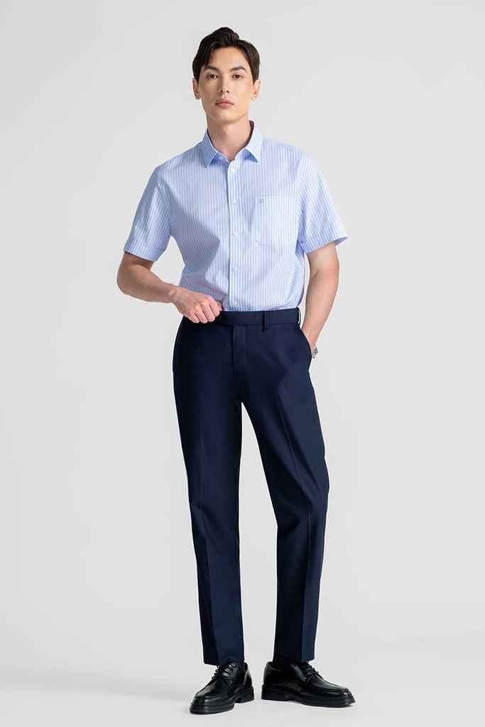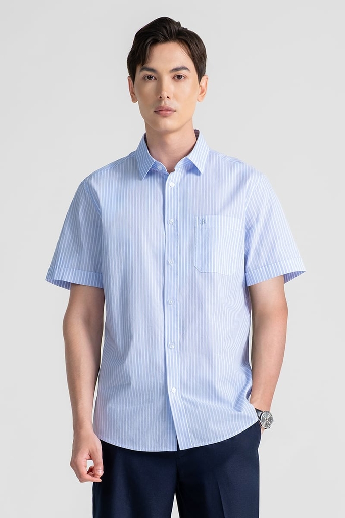 - Thiết kế form ôm gọn gàng, tay ngắn linh hoạt, cổ bẻ cổ điển cùng họa tiết vải kẻ sọc hiện đại, trẻ trung. Túi trước ngực cùng logo thêu tinh tế tạo điểm nhấn nhẹ nhàng, kết hợp cùng đường may chắc chắn mang đến tổng thể chỉn chu và nam tính.